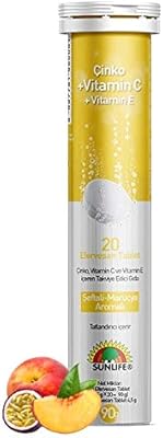 Günlük çinko c ve e vitamini ihtiyacını karşılamak için sunlife zink c e efervesan tablet zevkle içebileceğiniz marakuya şeftali aromalı tadıyla kullanımınıza sunulmuştur.