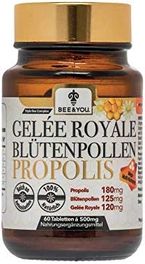 ürün 500 mg lik tek tablette 36 propolis 25 polen 24 arı sütü ve 15 oranında keçiboynuzu içeriyor. Bee o up propolis arı sütü polen 60 tablet propolis 36 arı sütü 24 polen 25 ve keçiboynuzu 15 içeren besin destek ürünüdüri güçlü bir beslenme profili yetişkinler için formüle edilmiştir. Ana etken maddeleri 180 mg propolis 120 mg. Beeo up propolis arı sütü polen emme tablet.