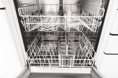 Bulaşık makinasının deterjan gözünün kapağı takılı kalmış ve açılmamış.
