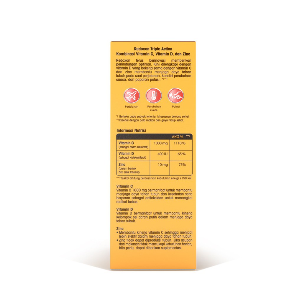 Redoxon adalah suplemen multivitamin yang mengandung vitamin c dan zinc seng untuk membantu memelihara daya tahan tubuh. Tiap tablet redoxon fortimun mengandung 1000 mg vitamin c dan 10 mg zinc. Redoxon rainy pack vitamin c zinc rasa jeruk 30 tablet x 2 unit. Bağışıklık için iyi olan çinko minerali ile c ve d vitaminleri bağışıklık sisteminin normal fonksiyonuna katkıda bulunur.