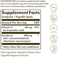 Solgar natural cranberry with vitamin c made by. Solgar has been creating health supplements since 1947. Today you might take cranberry remedies for the same purposes. As a dietary supplement for adults take one 1 vegetable capsule two times daily preferably with meals or as directed by a healthcare practitioner.