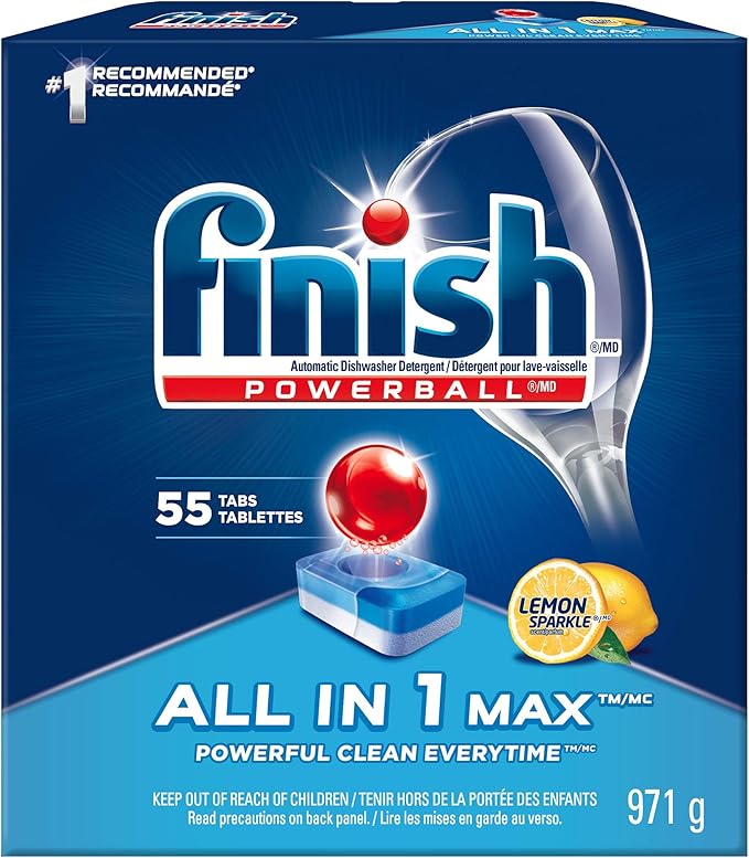 Tablets tablets and more tablets. Finish dishwasher detergent all in 1 max fresh 55 tablets cdn 12 97 cdn 0 24 1 count in stock. Buy finish dishwasher detergent all in 1 max fresh 55 tablets from walmart canada. Finish powerball tabs are 3x concentrated cleaning power of regular finish powder dosage pre soaking powerball scrubs away dried on food residues jet dry dishwasher rinse aid eliminates spots and film for sparkling shine easy to use pre measured dishwasher tablets with clean fresh scent 60 powerball dishwasher tablets 60 wash loads.
