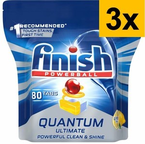 If you re looking to step it up a notch the finish powerball quantum max 4 x 60 pack is what might be going straight into your cart. 80 x tablets per pack package includes. And no that number isn t a typo. One quantum ultimate tablet contains 21x power actions including pre soaking action glass protect action and fast dissolving technology.