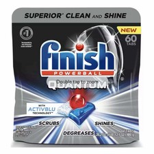 Finish gelpacs dishwasher detergent orange scent 84ct. Finish quantum ultimate our newest and fastest dissolving three chamber dishwasher tablet that can scrub degrease and shine providing you with the ultimate clean shine 1st time everytimetm mc. Finish quantum dishwasher tablet regular 60 s pack of 2 3 100 00 25 83 1 count in stock. Overall the results have been good and at the dinner table the troops have commented that the cutlery in particular is noticeably free of the occasional particle s that had stuck to the knife or fork.
