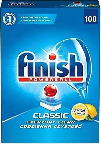 After trying every tablet finish have made and being total disappointed by their lack of performance and damage to my glassware i returned to plain old classic powder. The finish powerball classic contains a whopping 110 dishwasher tablets with each and every one providing optimal end results. This powerful cleaner removes all kinds of food waste and provides a shiny and clean result. Finish all in 1 lemon 100 dishwasher tab 1550g.