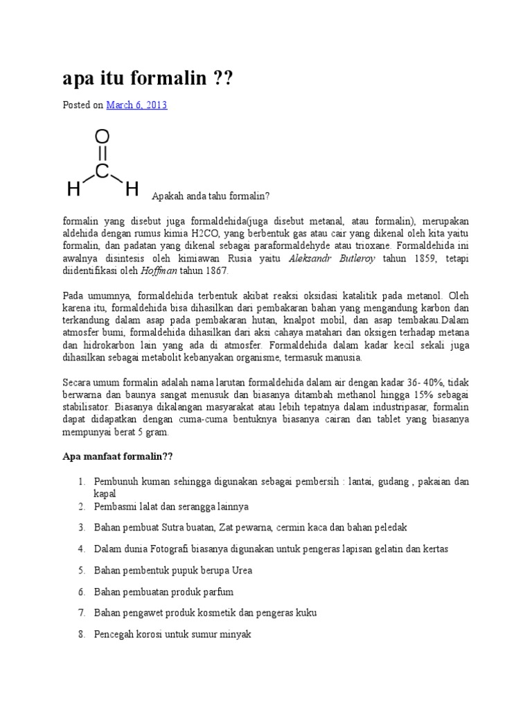 Pengertian fungsi dan sifat formalin nama formalin adalah nama dagang larutan formaldehid dalam air dengan kadar 30 40 persen. This material is provided for educational purposes only and is not intended for medical advice diagnosis or treatment. Formol indications and usages prices online pharmacy health products information. Tel 0216 394 06 16.