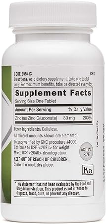 Gnc zinc 15 mg 100 tablet. Aceasta formula contine 600 mg de vitamina c 15 mg de zinc si ofera protectie antioxidanta sporita este esentiala pentru sanatatea oaselor a dintilor a vaselor de sange si stimuleaza productia de colagen. Free shipping offer does not include p o. Gnc zinc 30 mg 20. çinko vücutta birçok faliyetin yerine getirilmeside rol oynayan bir mineraldir.