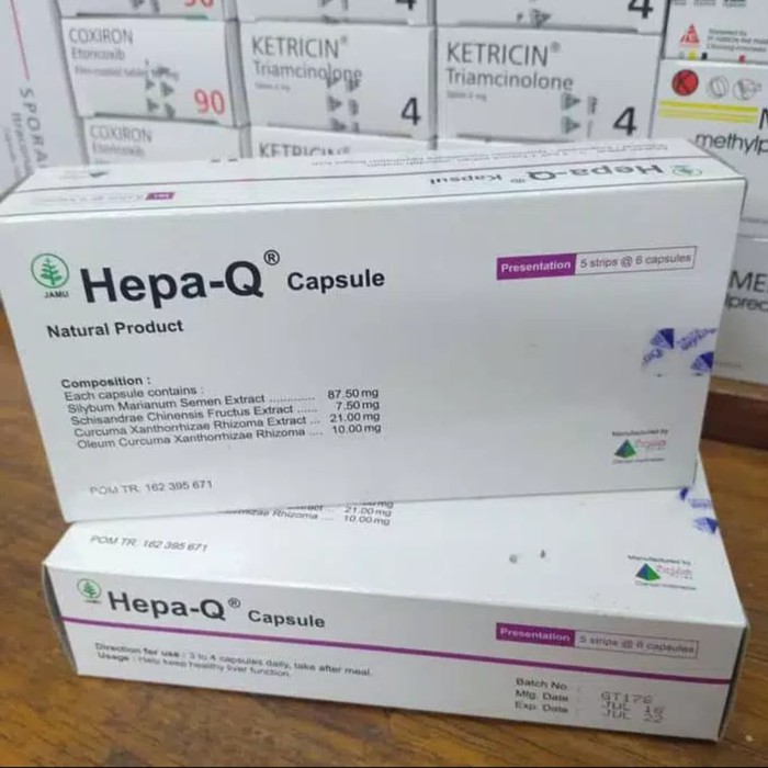Hepa q kapsul dengan komposisi silybum marianum extract curcuma xanthorrizae extract oleum xanthorrizae fructus schisandrae extract memiliki khasiat membantu membersihkan dan memperbaiki fungsi hati.