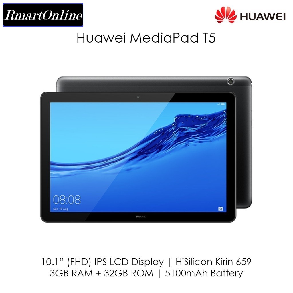 Huawei mediapad t5 10 1 inch android 8 0 tablet 1080p full hd display kirin 695 octa core processor ram 3gb rom 32gb dual stereo speakers 5100mah large battery black. This huawei t5 mediapad is great easy to operate all functions 32gb memory and 3gb ram great for downloading and playing. Huawei mediapad t5 10 1 32gb wifi tablet black. Huawei mediapad t5 android tablet has a sleek lightweight metal body stunning 10 1 inch full hd display dual speaker system and powerful kirin 659 octa core 2 36 ghz processor.