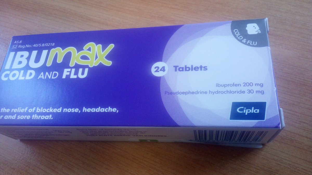 A pink sugar coated tablet. Containers of 24 and 1000 tablets. Ibumax cold and flu tablets should not be given to patients with hyperthyroidism phaeochromocytoma prostatic enlargement cardiovascular disease such as ischaemic heart disease dysrhythmia or tachycardia occlusive vascular disorders including arteriosclerosis hypertension or aneurysms diabetes mellitus or closedangle glaucoma. Before using ibumax cold flu tablet inform your doctor about your current list of medications over the counter products e g.