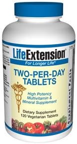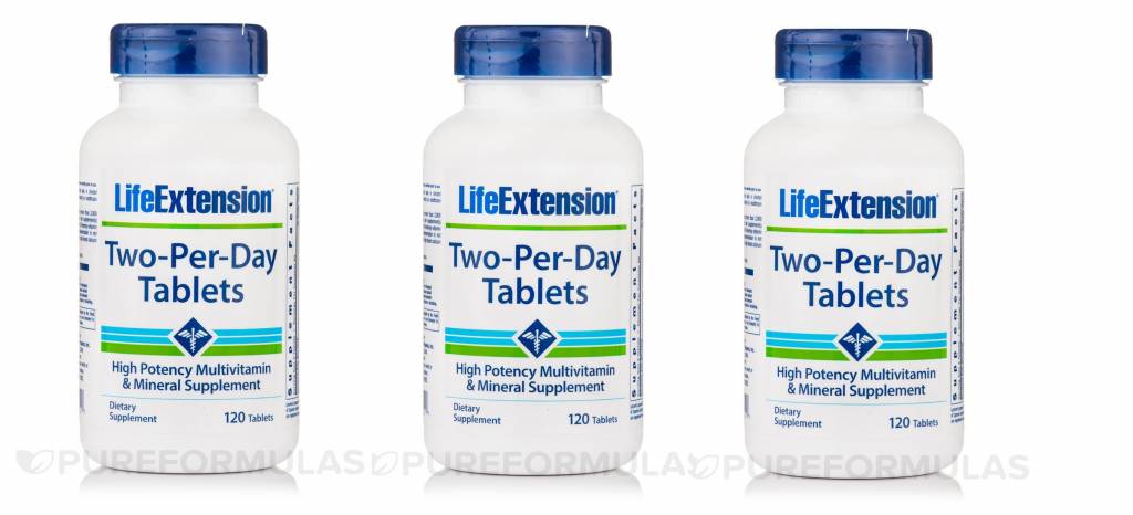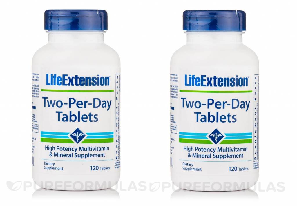 Life extension two per day tablets. Get the most out of your multivitamin with life extension one per day tablets. Life extension two per day tablets contain bioactive forms of vitamin b2 vitamin b6 and more 30. Life extension s two per day multivitamins have the highest nutritional potencies of any science based multivitamin formula that can fit inside two capsules or tablets.