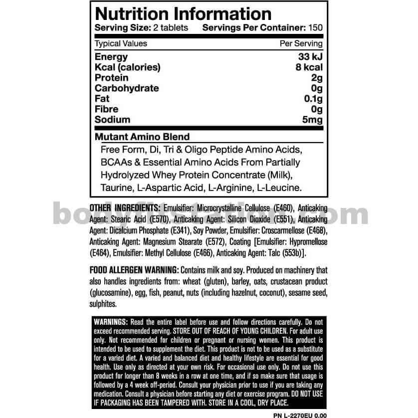 100 orijinal kompleks amino asit ürünleri. Per dose 6 tablets 9 6g energy value.