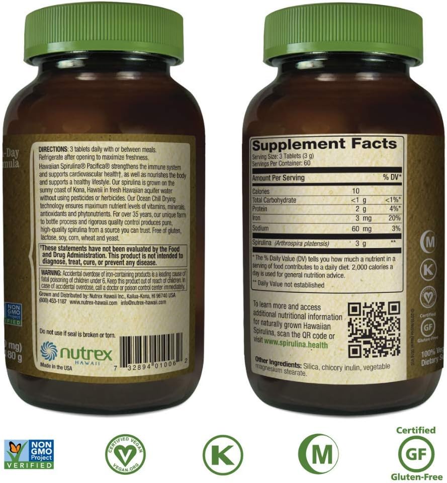 Nutrex hawaiian spirulina pacifica powder is available from amazon at the lowest price we ve seen online. Nutrex hawaii pure hawaiian spirulina 500 mg 200 tablets. The pure hawaiian spirulina formula utilizes the powerful natural force of spirulina to provide a multitude of health benefits for your body. 1 teaspoon of powder mixed in liquid.