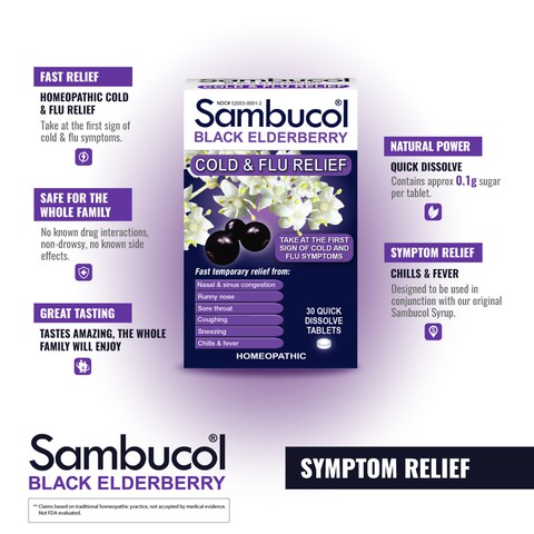 Sambucol is a brand of standardized black elderberry extract marketed for cold and flu relief. It is a unique extract rich in immune support antioxidant flavonoids. This medicine is also possibly effective in reducing the symptoms of influenza the flu. Developed by a world renowned virologist sambucol is the unique black elderberry extract that has been used in scientific studies.