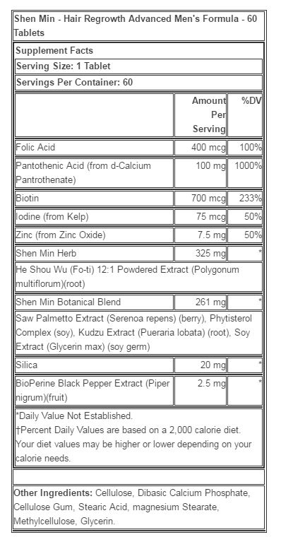 Shen min erkek 60 tablet i̇çeriği. Advanced men s formula tablets 60 ct. Shen min hair strengthing formula dht blocker tablets 60 count shen min advanced hair strengthening formula for men tablets 60 count shen min topical hair nutrient for thinning hair 3 1oz. 1 tablet servings per container.