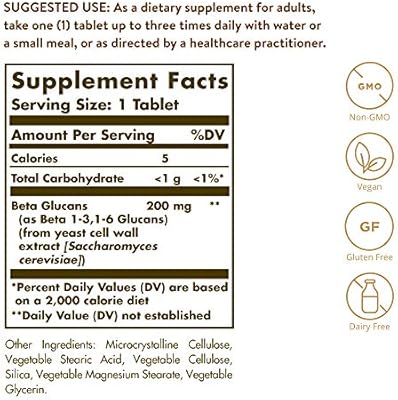 Solgar beta 1 3 glucans 60 tablets 10 87 0 18 1 count in stock. Suggested use as a dietary supplement for adults take one 1 tablet up to three times daily with water or a small meal or as directed by a healthcare. Suggested use as a dietary supplement for adults take one 1 tablet up to three times daily with water or a small meal or as directed by a healthcare practitioner. Solgar beta glucans tablets are naturally derived from a concentrated yeast cell wall material.