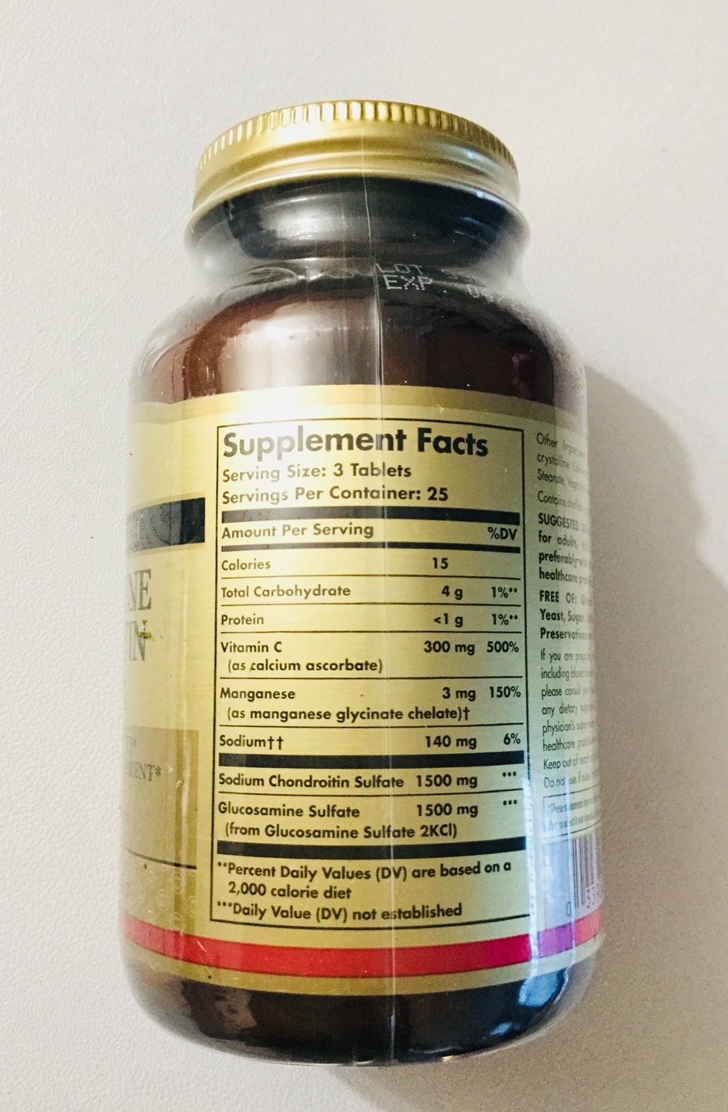 Glucosamine promotes joint health and nutritionally works to promote the structural framework of healthy joints glucosamine and chondroitin are important components of glycosaminoglycans the essential structural material in healthy cartilage supporting mobility range of motion flexibility and easing of occasional joint stress due to exercise or physical activity vitamin c is involved in. Free 2 day shipping on qualified orders over 35. Vitamin c 300 mg calcium 36 mg manganese 3 mg sodium 130 mg sodium chondroitin sulfate 1500 mg glucosamine sulfate from shellfish 1500 mg other ingredients. Solgar glucosamine chondroitin complex has vitamin c and 1500 mg of sodium chondroitin per serving 3 capsules.