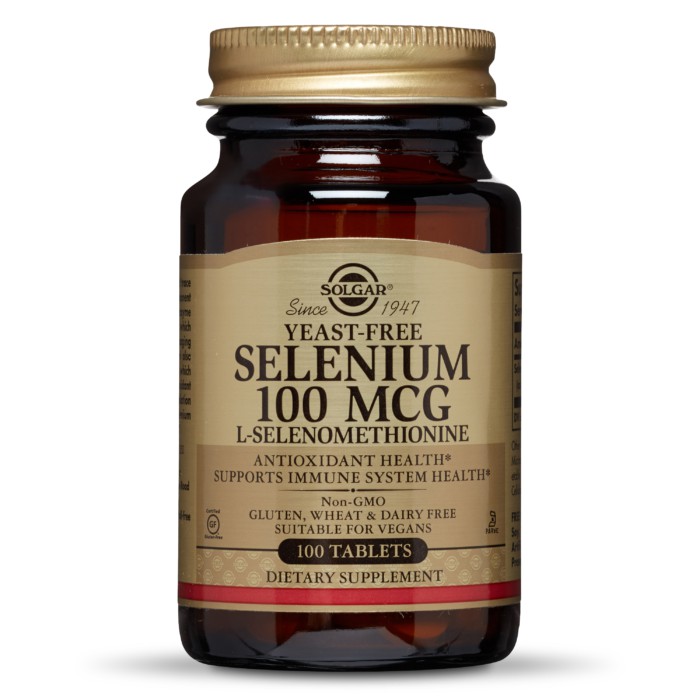 Selenium as l selenomethionine 100 mcg. 754 reviews write a review. Solgar yeast free selenium 100 mcg 100 tablets visit the solgar store. Selenium yeast free 100 mcg tablets contain selenium an essential trace mineral which can naturally be found in the soil.