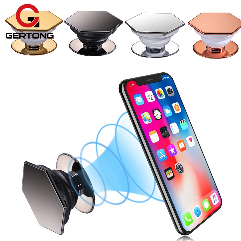 There s a small accordion like stem connected to the disk that enables you to expand or pop out the device to provide a better grip on your phone or tablet.